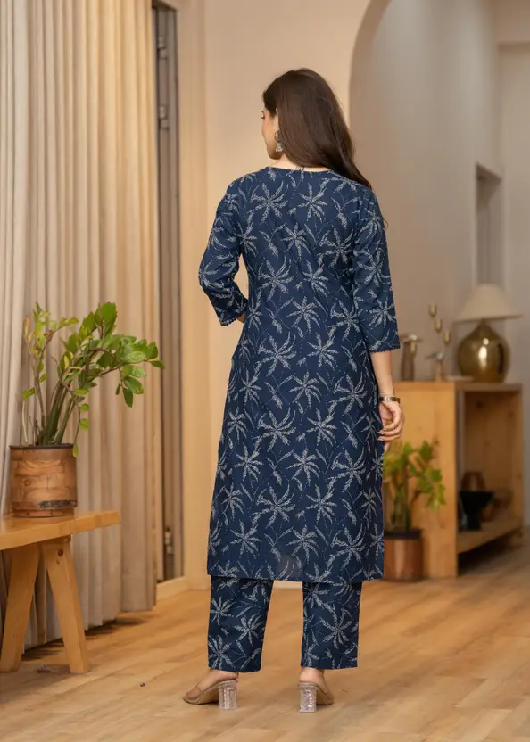 Elegant Navy Blue Palm Print Kurta