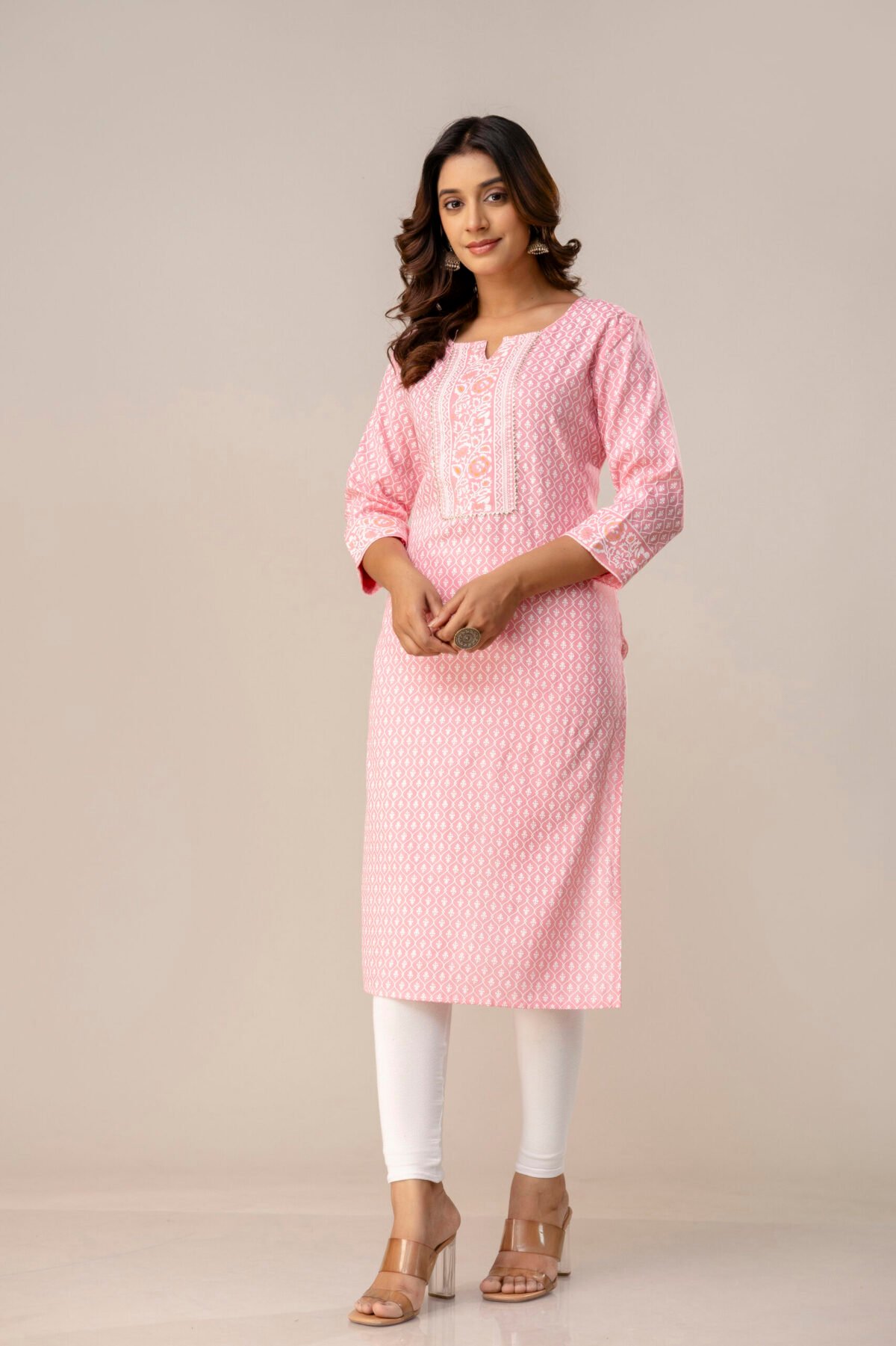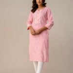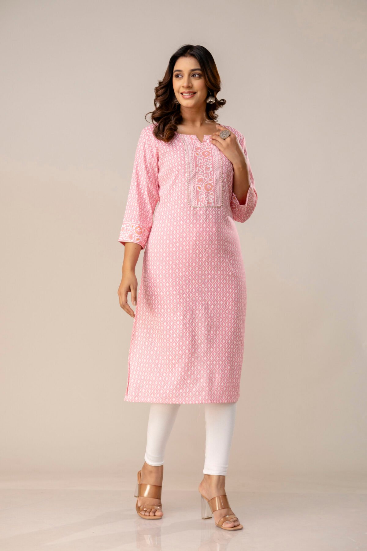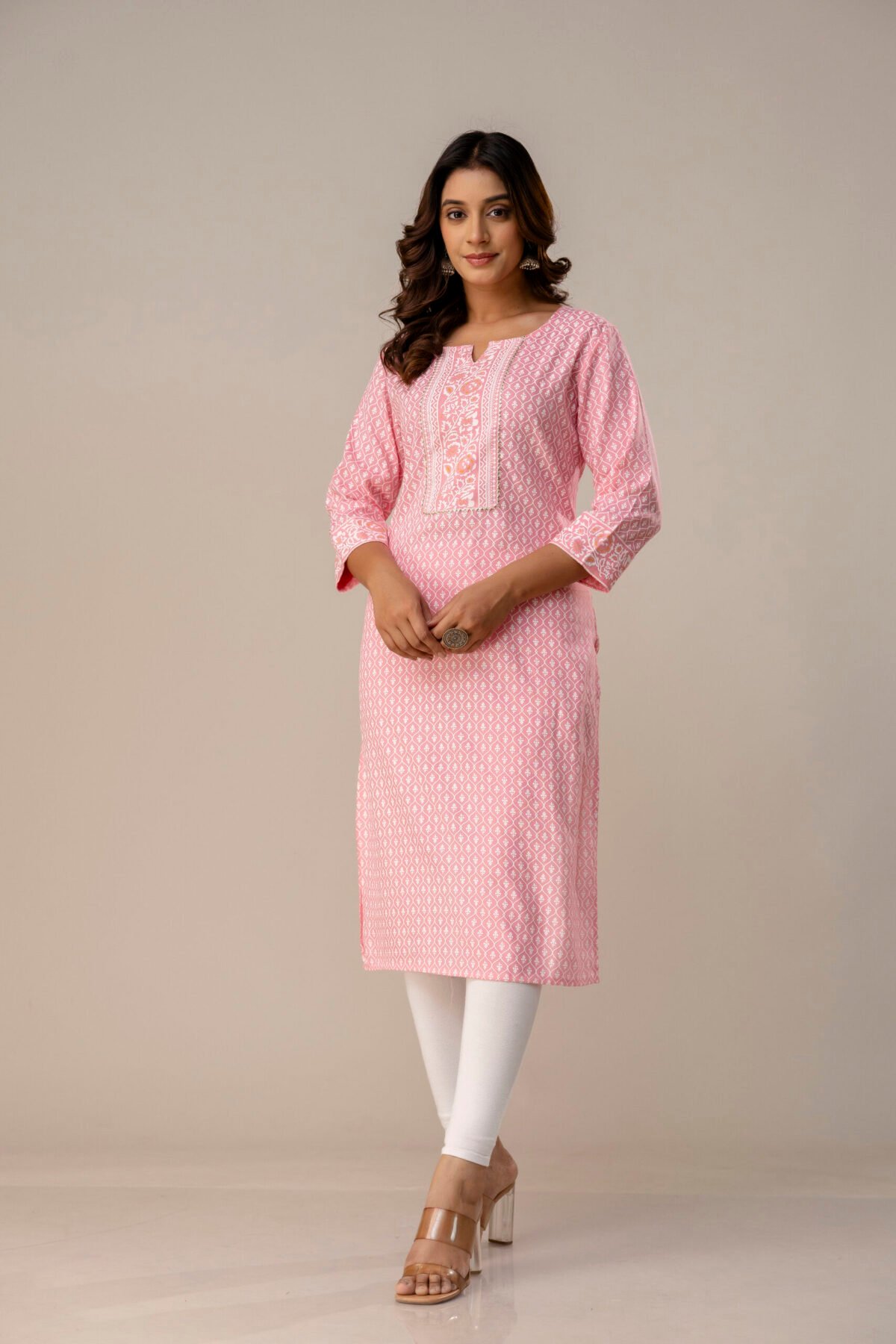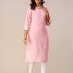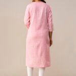 Zohra Kurti – Delicate Baby Pink Chikankari Straight-Cut Kurta with Floral