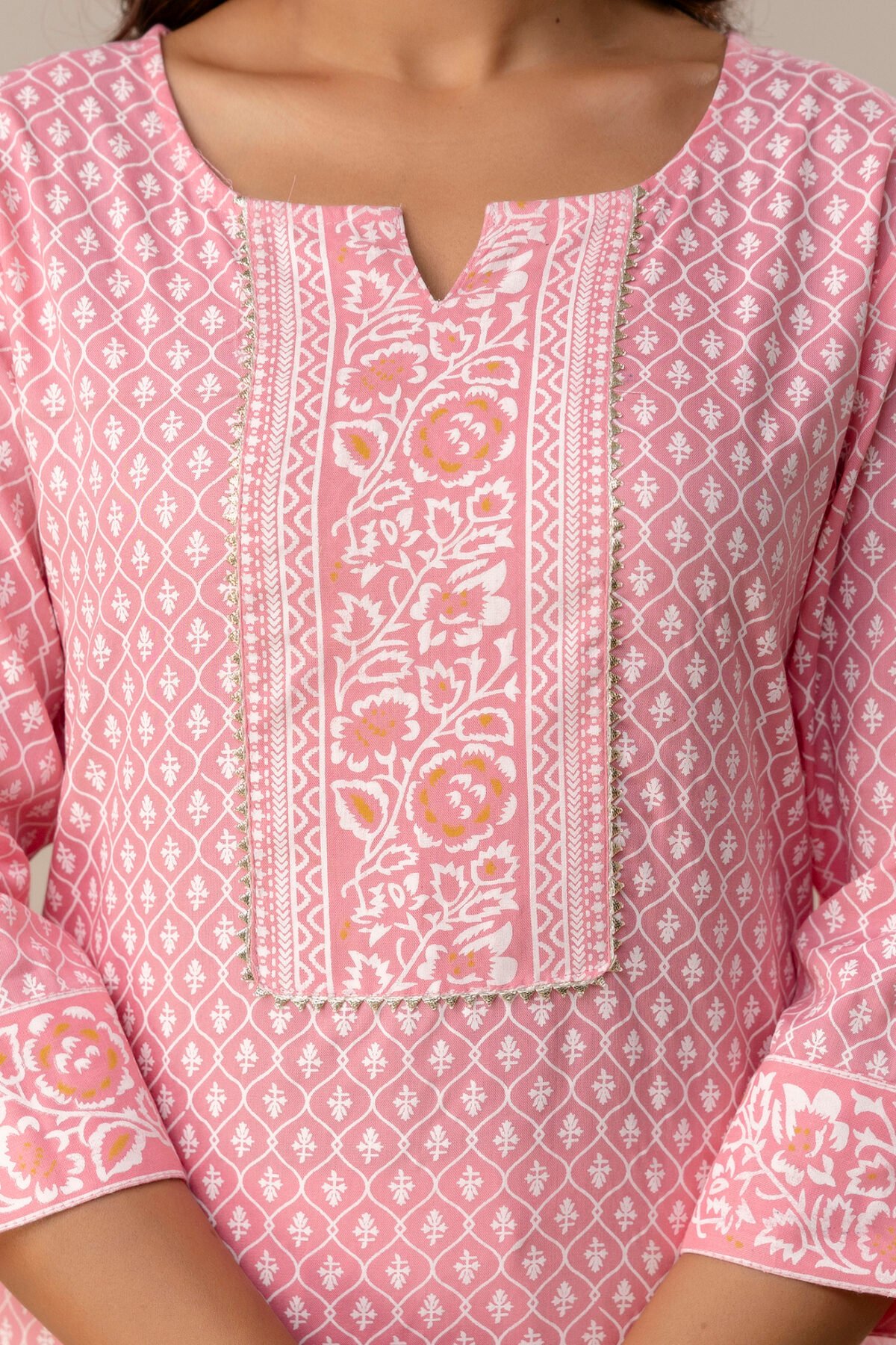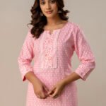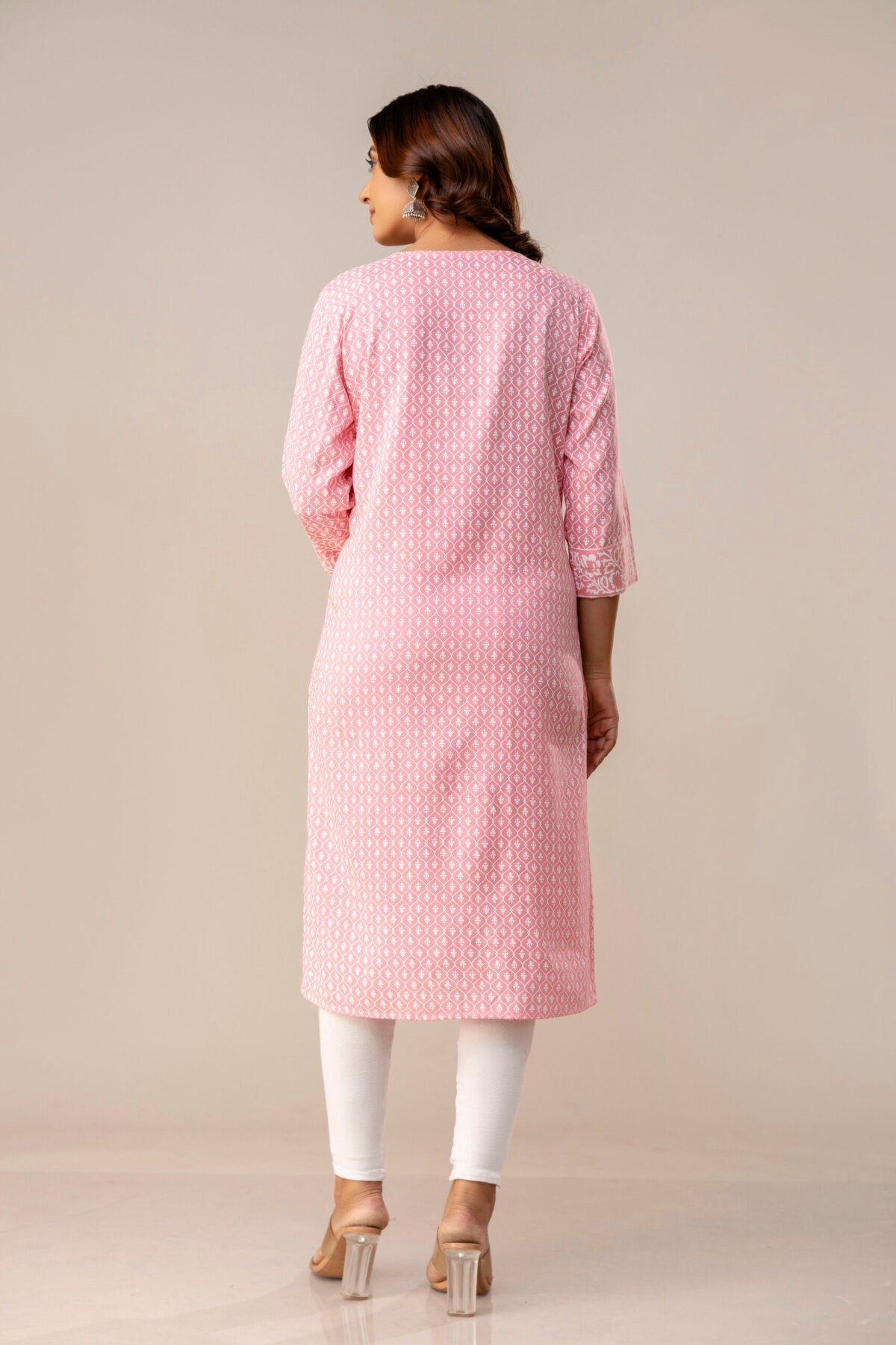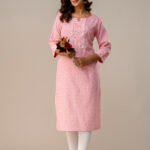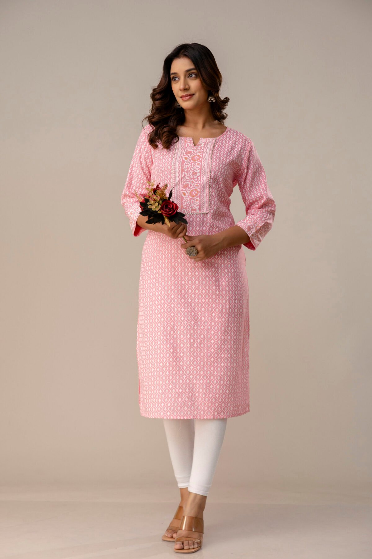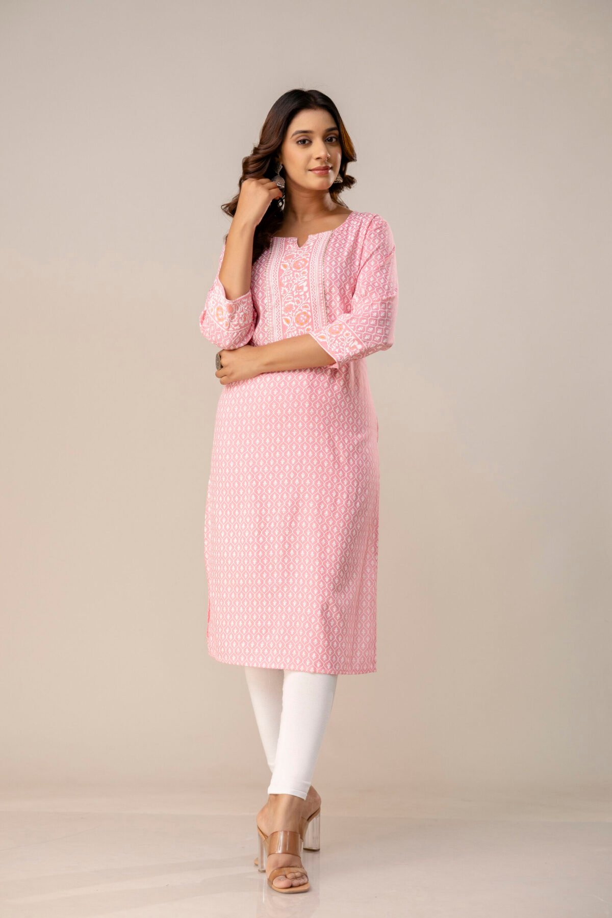 Zohra Kurti – Delicate Baby Pink Chikankari Straight-Cut Kurta with Floral